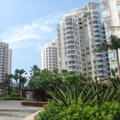 海口耀江花园是海德股份主营调整后开发的第一个房地产项目,该项目位于海南省海口市龙昆南路西侧海德路五号,总用地面积为63473.26平方米,呈长方形,地势平坦。该项目东邻龙昆南路、龙泉花园,西邻现代花园,北靠海德路,周边均为大型成熟高档住宅小区,用地紧临城市干道,交通便捷,属海口市高地势区,空气流动性好,阳光充足,景观资源丰富,环境相对安静,闹中取静,地质条件良好。按照规划要求,该项目定位为中高档小高层商品房住宅,设计开发住宅面积113891.89平米,临街商铺面4481.76平米,车库面积29621.93平米(总计车位1260辆),容积率1.9,建筑密度16.8%,绿化率大于55%,另有附属用房、大型会馆、游泳池、网球场等健身场所。
