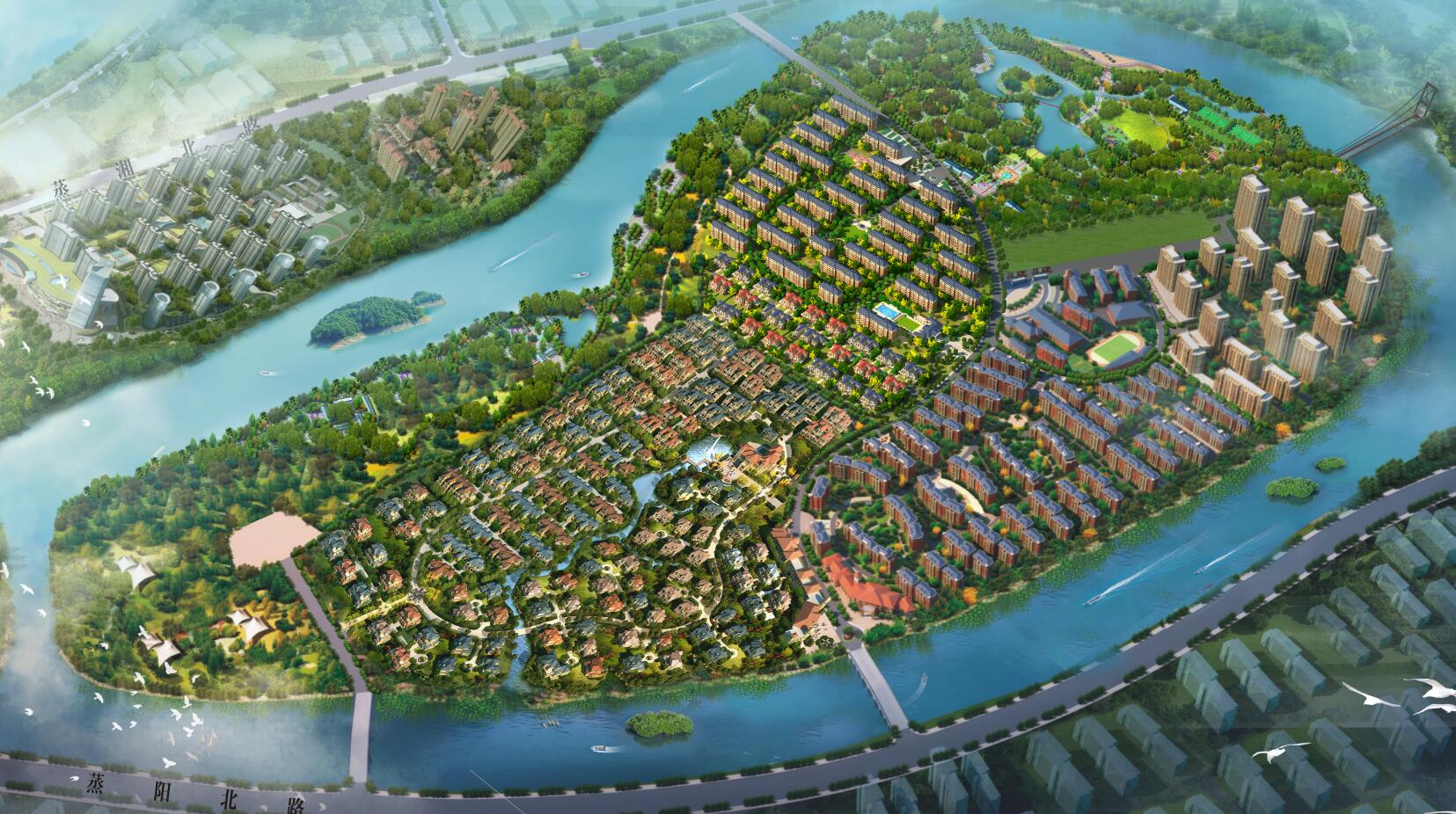 雁栖湖·耀江花园位于湖南省衡阳市区蒸水河畔雁栖大桥北岸,为雁城唯一的“生态·岛居”大盘,与雁栖湖生态公园连成一片,拥有近922亩翡翠绿地,且四面环水自成岛屿。项目规划总占地面积1136亩,规划总建筑面积91万平方米,是一个集多层湖景洋房、小高层电梯房、高层电梯房、联排别墅、双拼别墅、独栋别墅及名牌学校于一体的生态岛居大型社区。