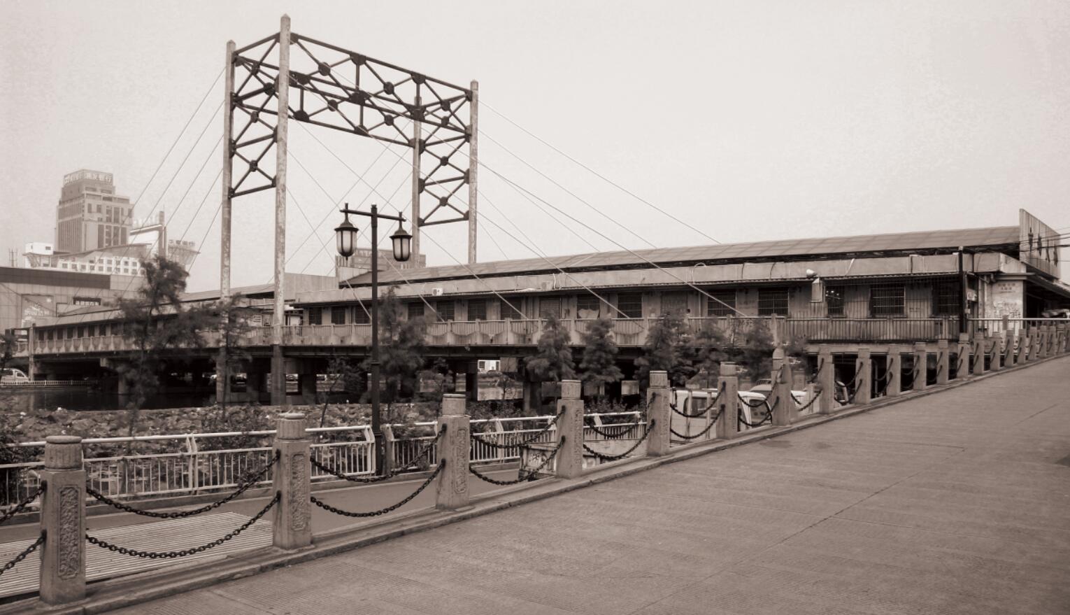 绍兴轻纺城市场大桥位于轻纺大桥以东250米左右处,桥南坡接入东交易区二层,桥北坡与北交易区二层连接,桥形采用斜拉桥,桥宽22米,桥长140米,桥梁底标高不低于9.5米。